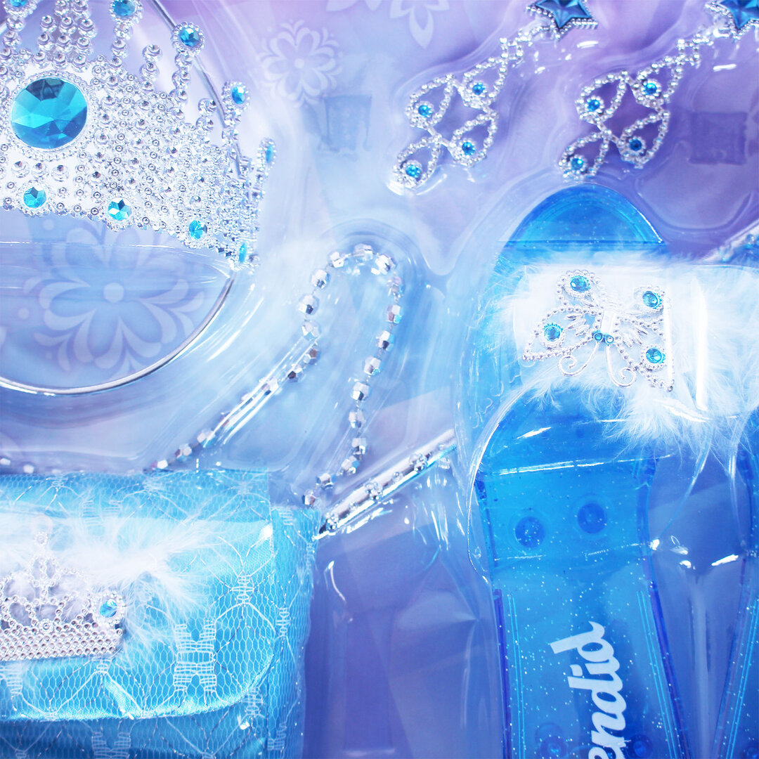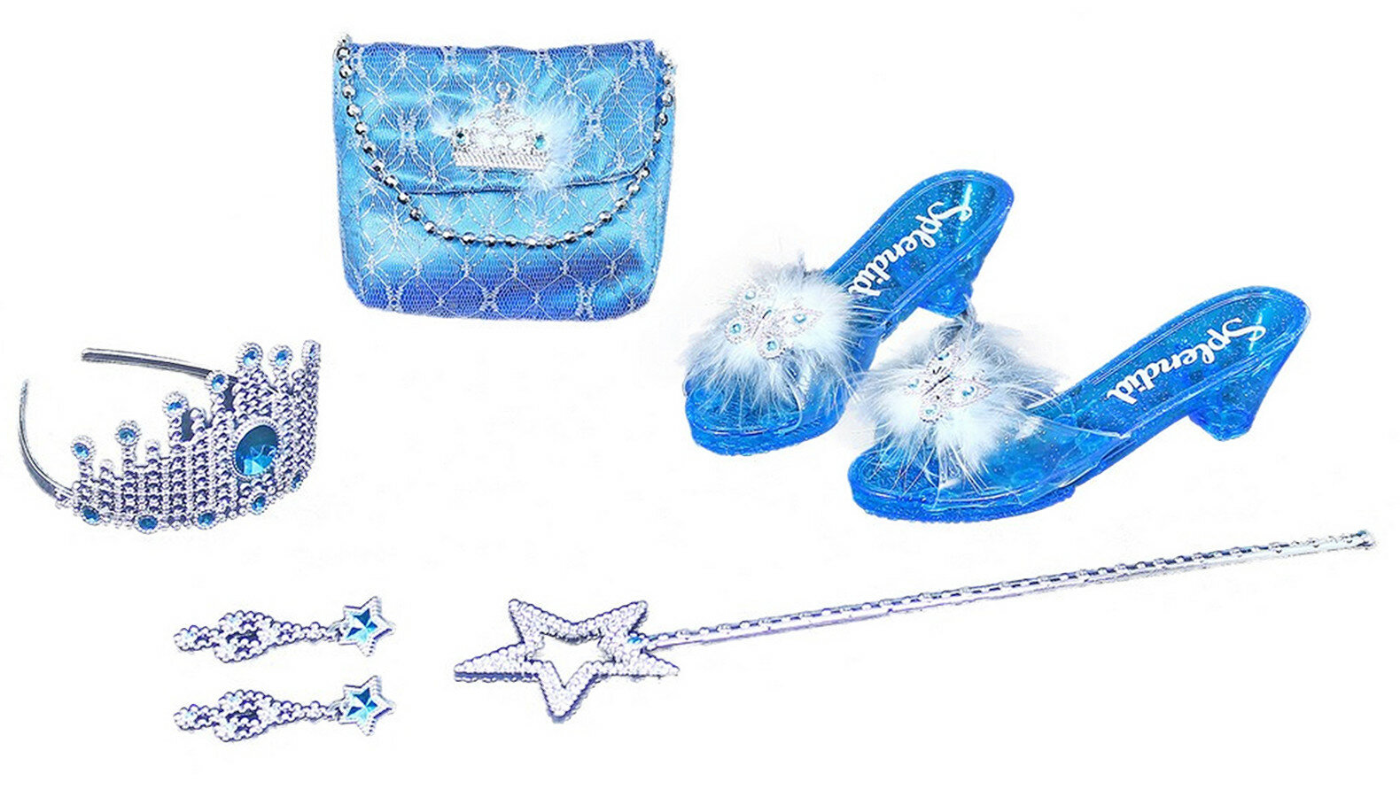 Ktoré z malých dievčatiek by potom netúžilo stať sa aspoň na chvíľu krásnou princeznou! Sada obsahuje topánky, kabelku, čelenku, korunku, náušnice a prútik. Všetky prvky tejto súpravy sú dokonalými doplnkami ku kostýmu. Veľkosť topánok je približne 19 cm. Odporúčame pre dievčatá od 3 rokov.
