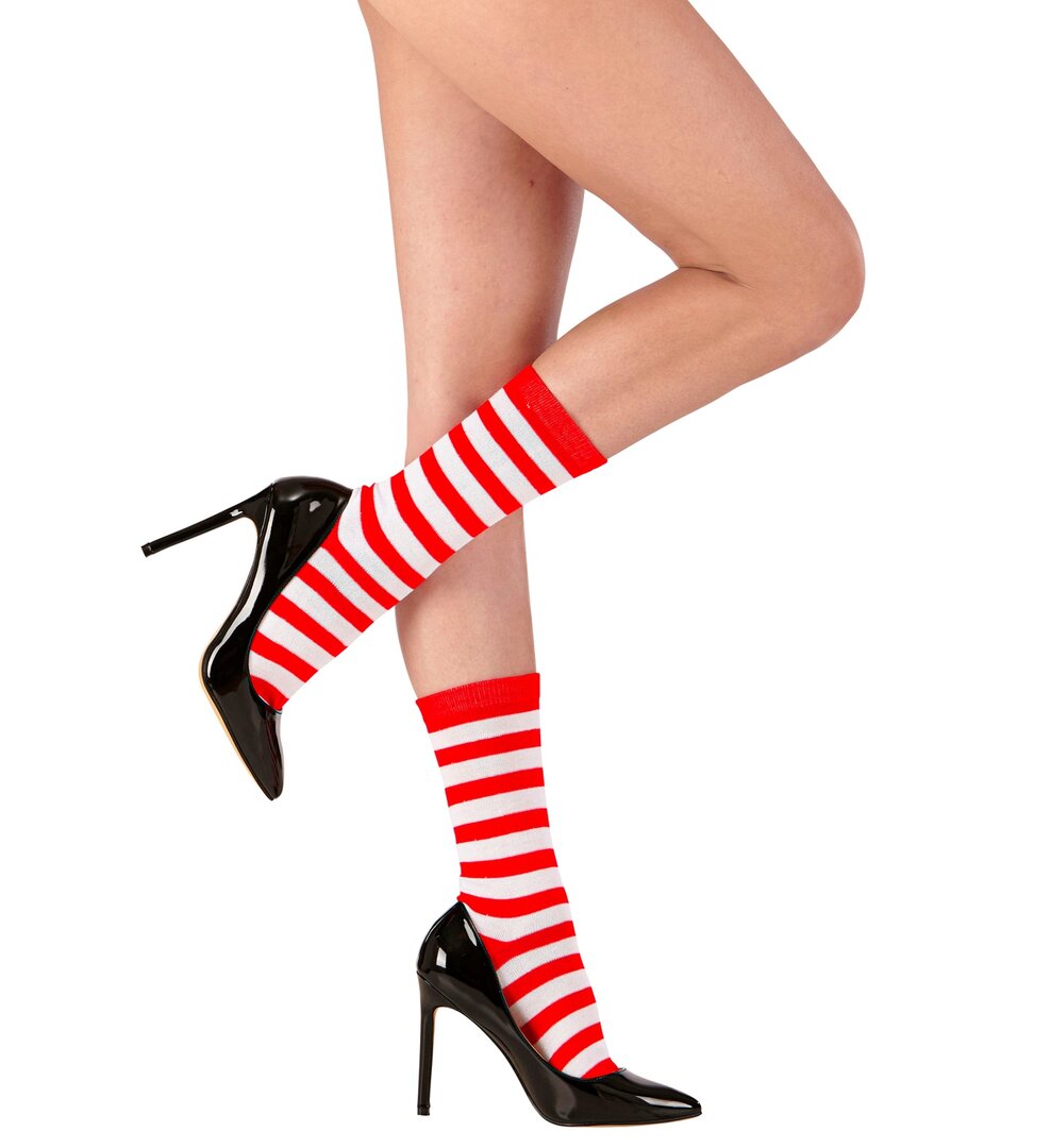 Klaunské pruhované ponožky, červené a biele Klaunské pruhované ponožky, červené a biele