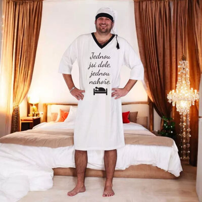 Nočná košeľa s čiapkou Raz si dole, raz si hore Nočná košeľa s čiapkou Raz si dole, raz si hore