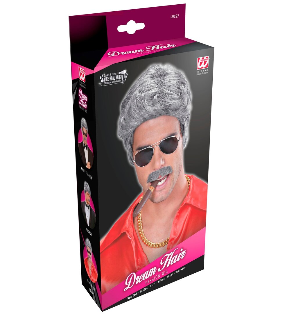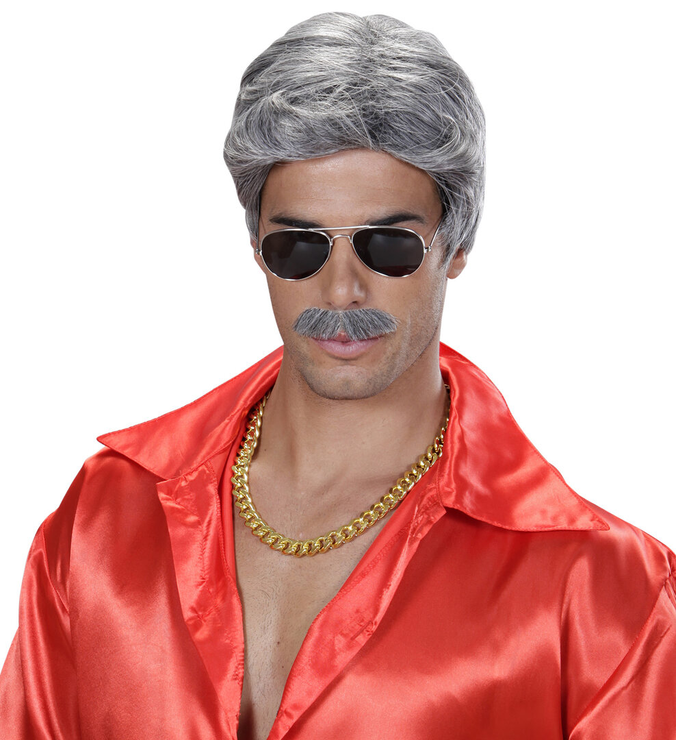 Pánska sivá parochňa s fúzmi