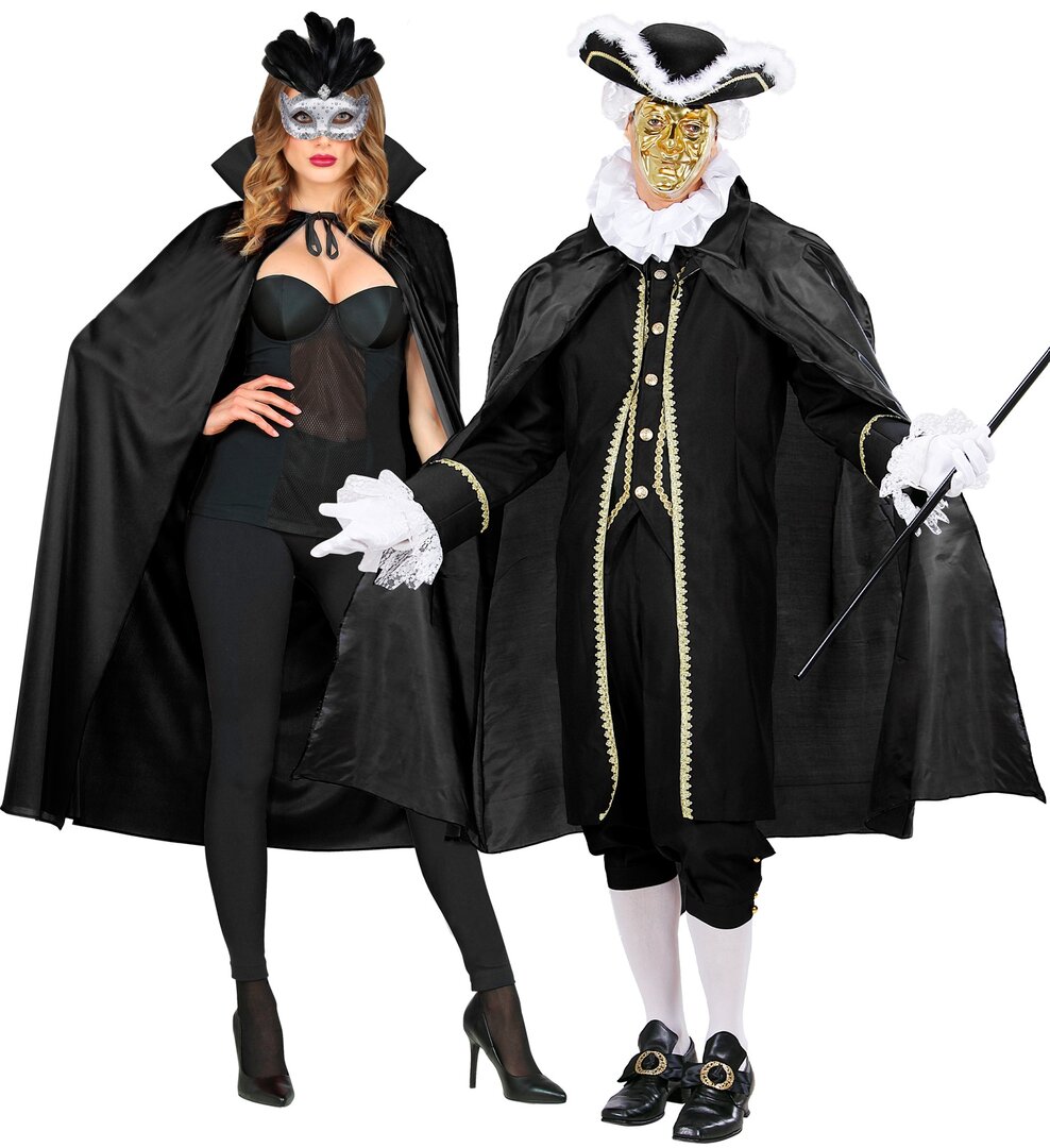 Čierny saténový plášť bez kapucne je univerzálnym doplnkom ku kostýmu upíra, čarodejnice, čarodejníka alebo Zorra - Pomstiteľa.
