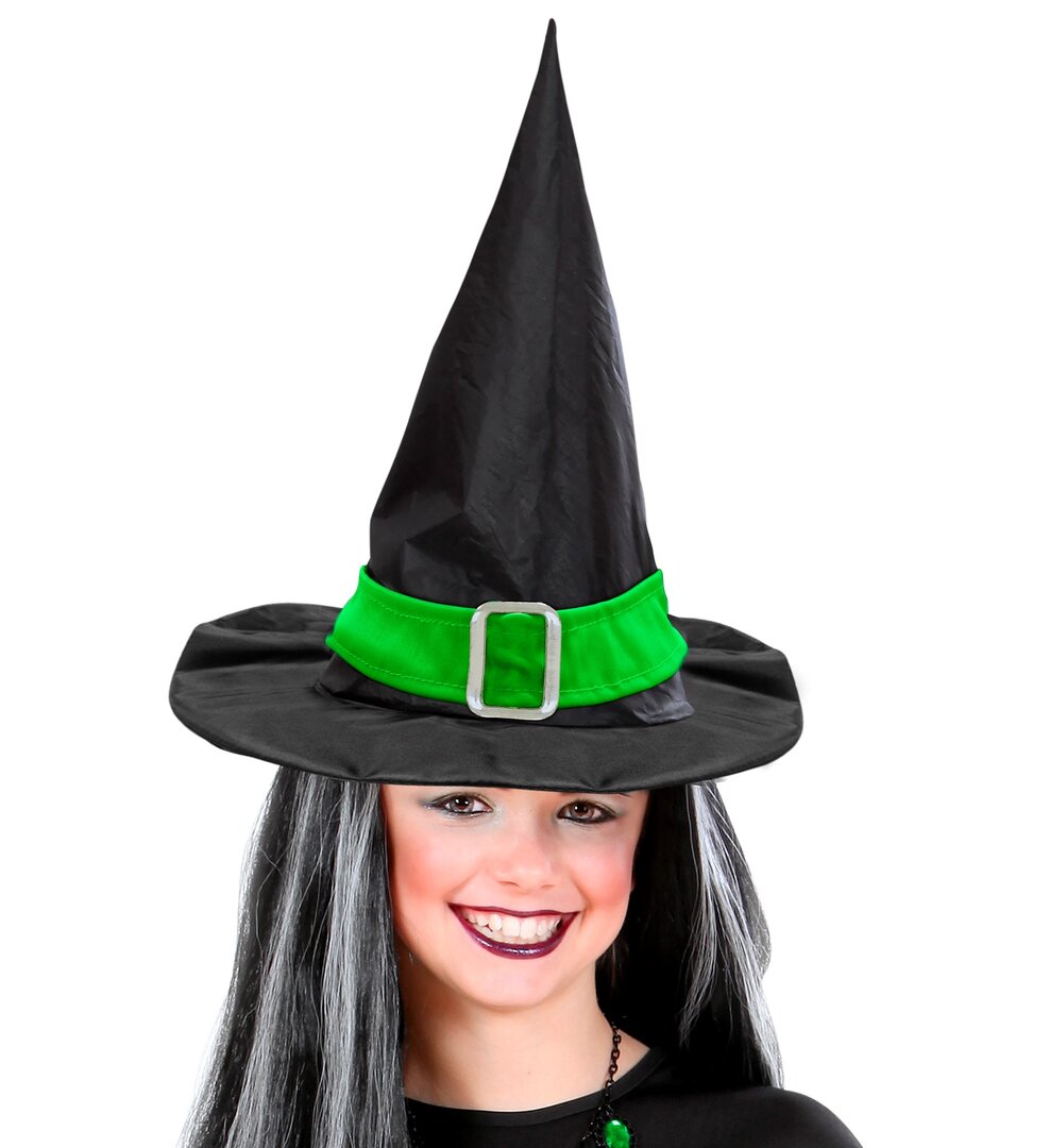 Dievčenský čarodejnícky klobúk so zelenou stuhou