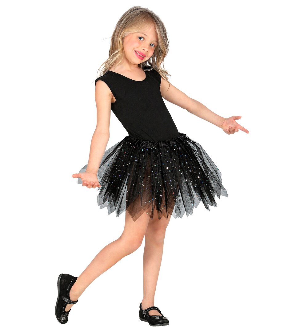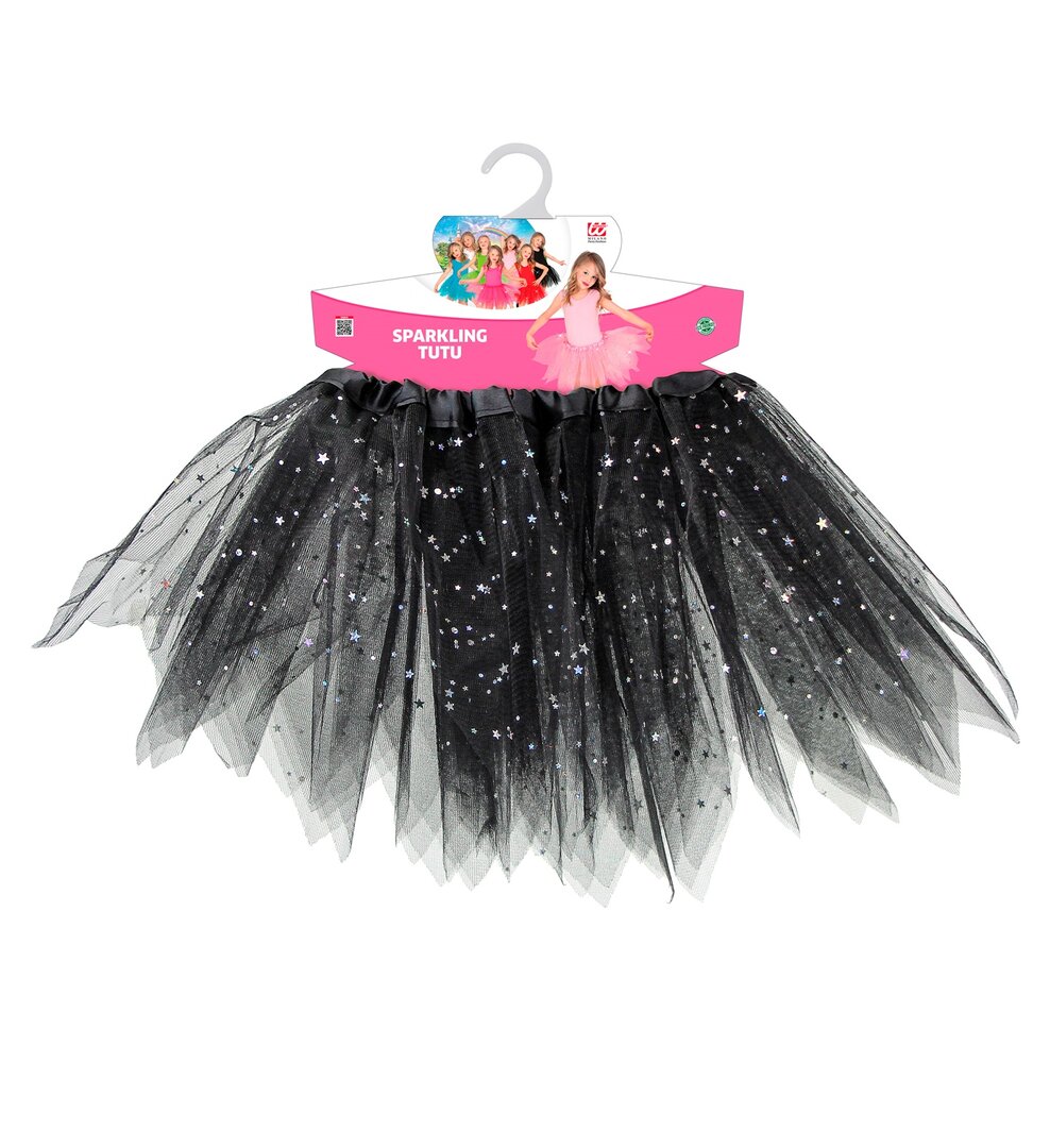 Dievčenská čierna tutu sukňa s trblietkami, 30 cm