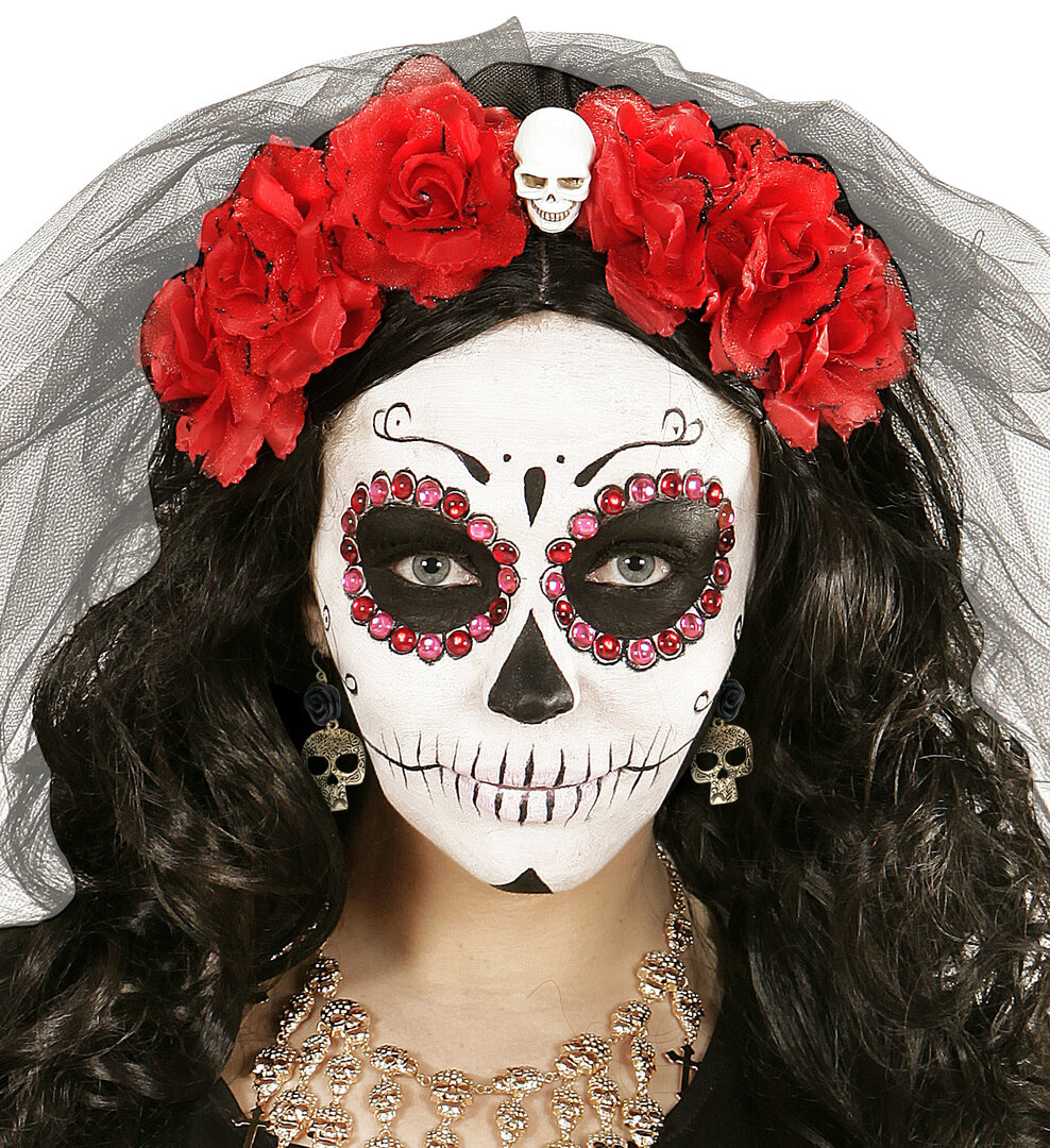 Pár náušníc s čiernou ružou a zlatou lebkou