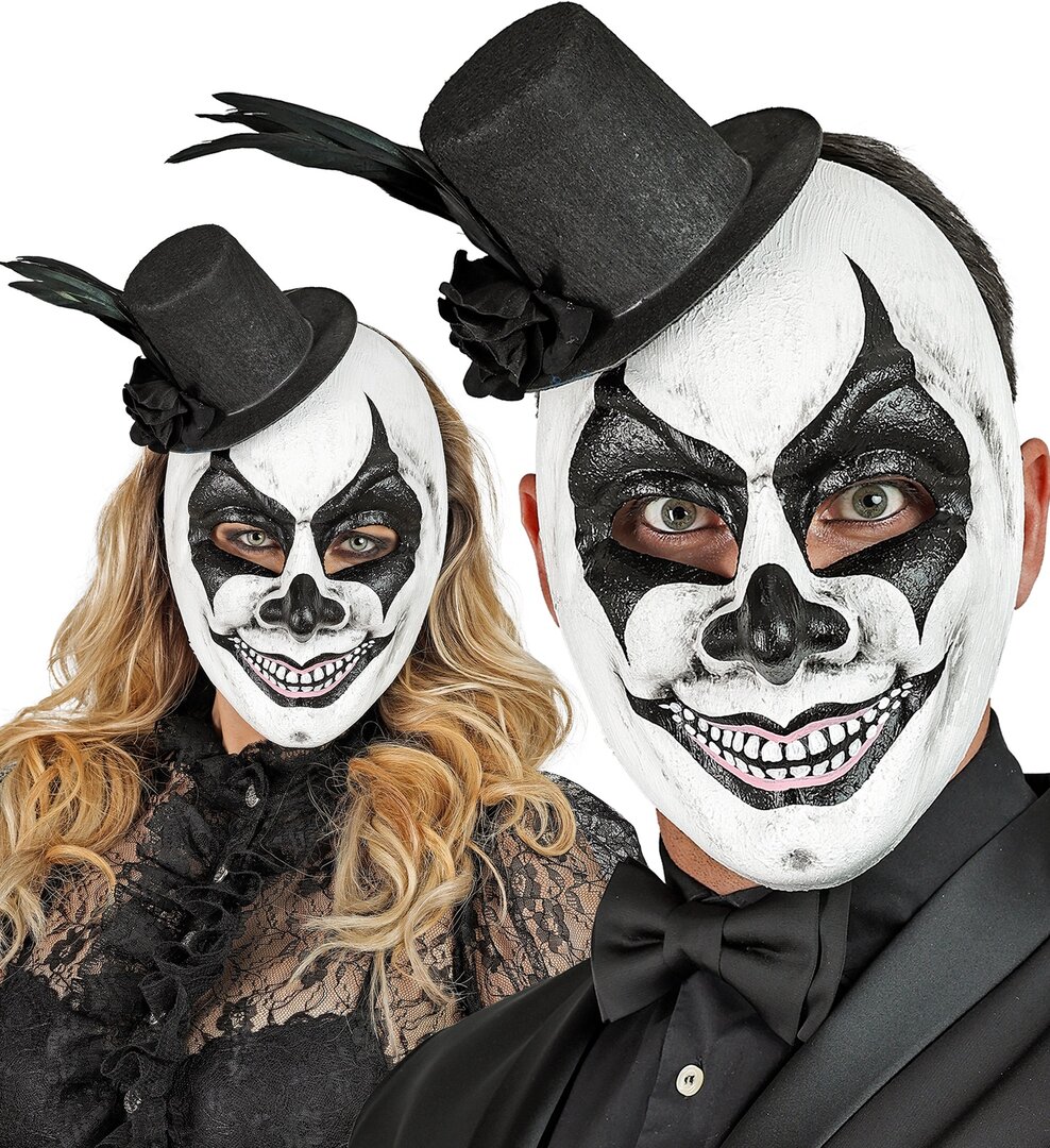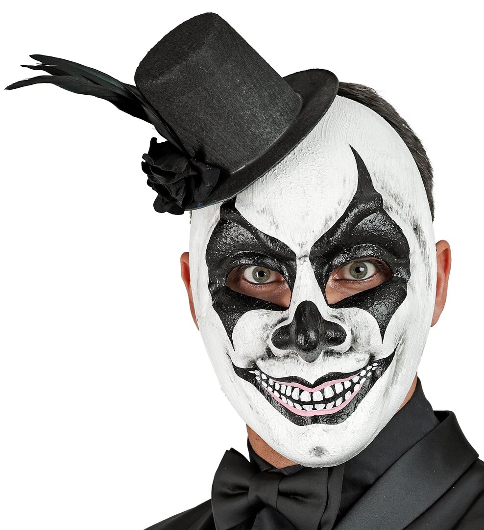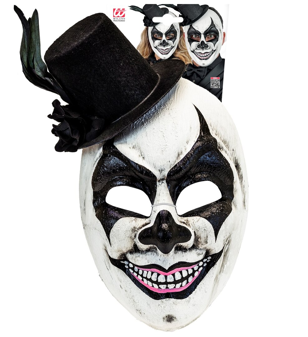Divadelná čiernobiela maska s klobúkom Divadelná čiernobiela maska s klobúkom