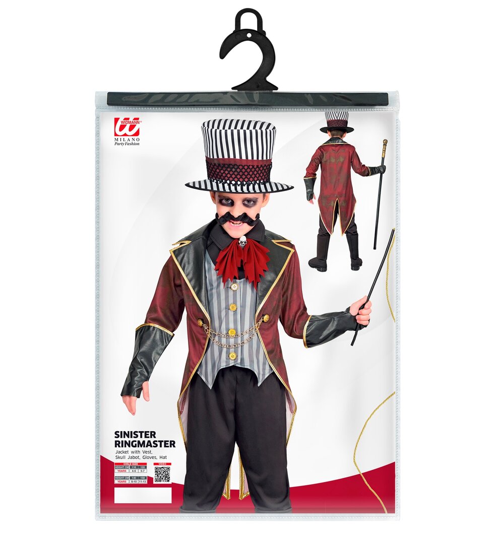 Zlovestný ringmaster (plášť s vestou, golierom s lebkou, rukavicami a klobúkom)