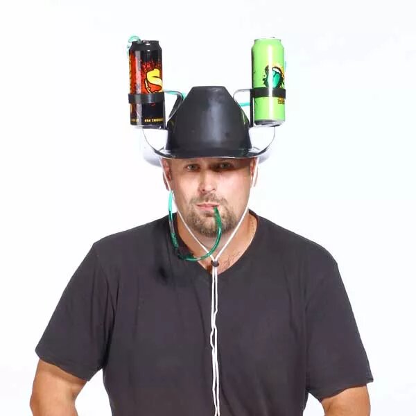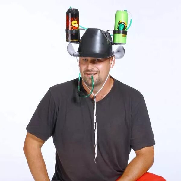 Čierny plastový kovbojský klobúk má niekoľko funkcií. Chráni vás pred slnkom a zároveň vám pomáha udržiavať hydratáciu. Čím ho naplníte, je na vás, úchyty sú určené pre všetky typy plechoviek.