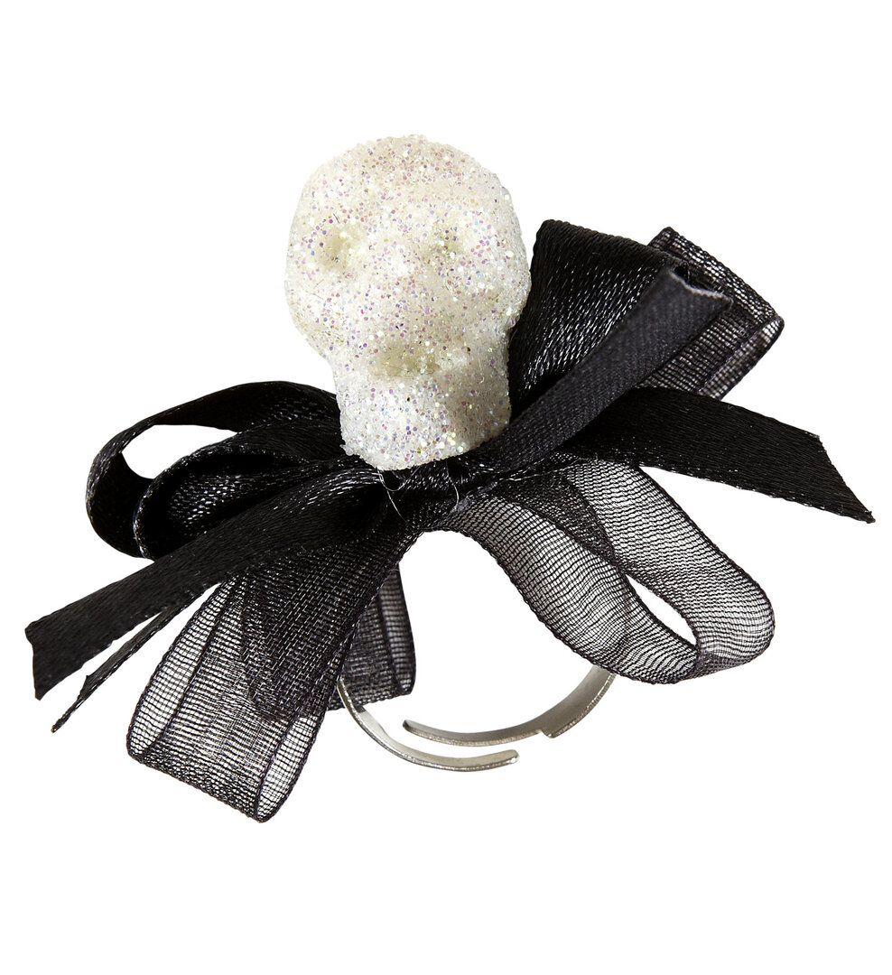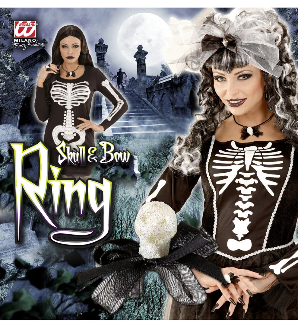 Prsteň - lebka a mašľa