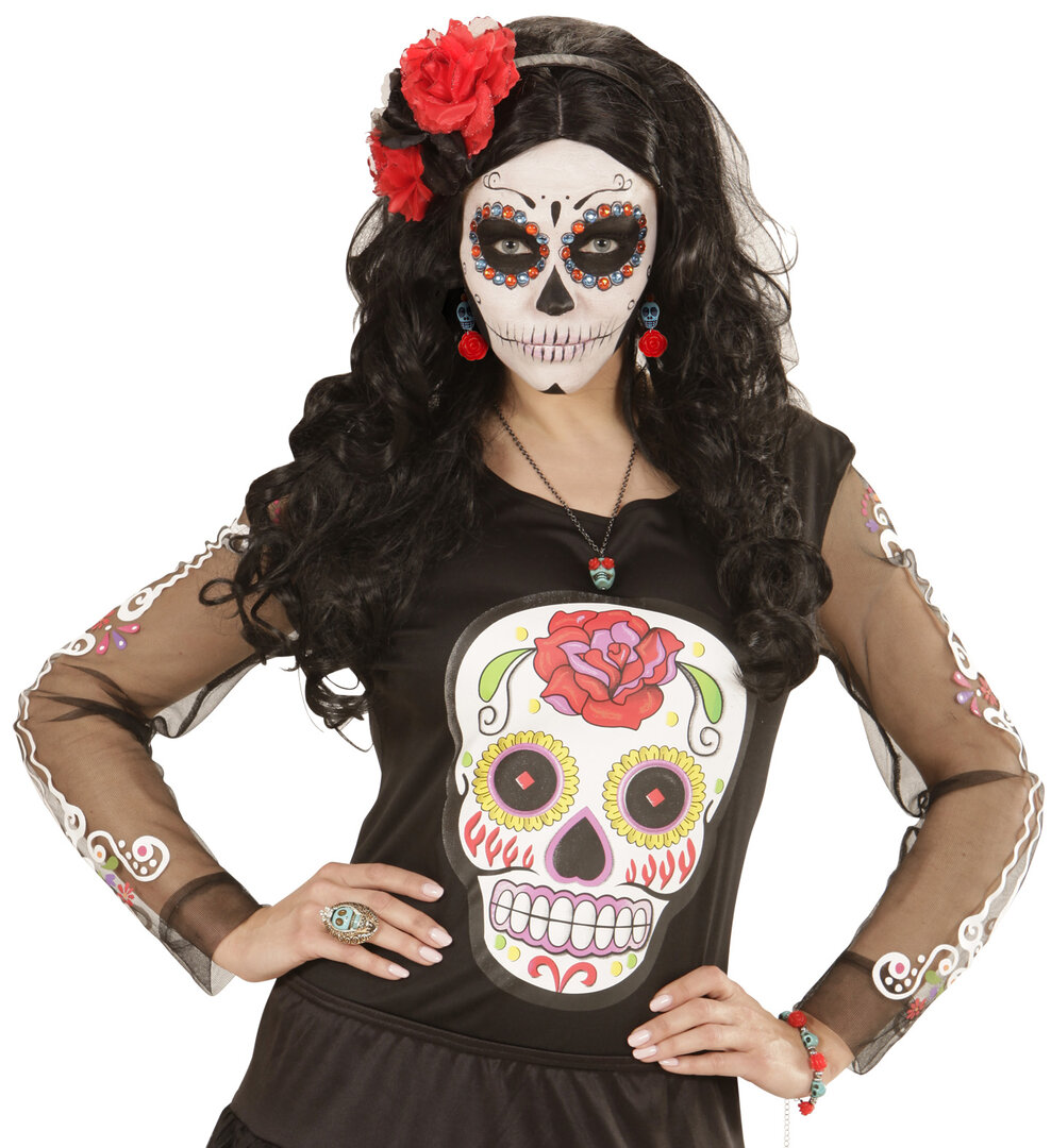 Pár náušníc s azúrovou lebkou a červenou ružou Pár náušníc s azúrovou lebkou a červenou ružou