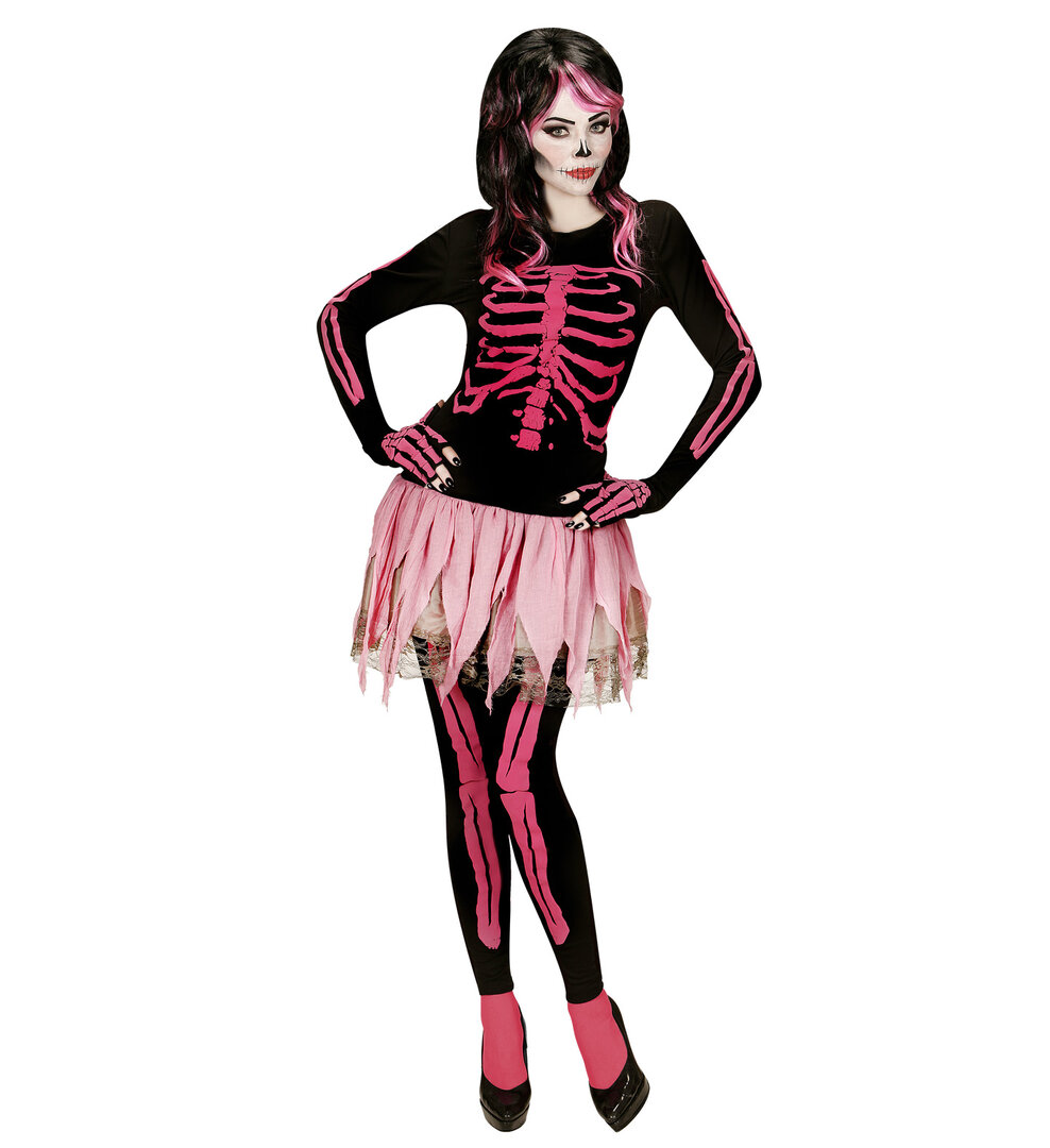 Dámsky ružový kostým kostlivca (tričko, nohavice, tutu sukňa, rukavice bez prstov)