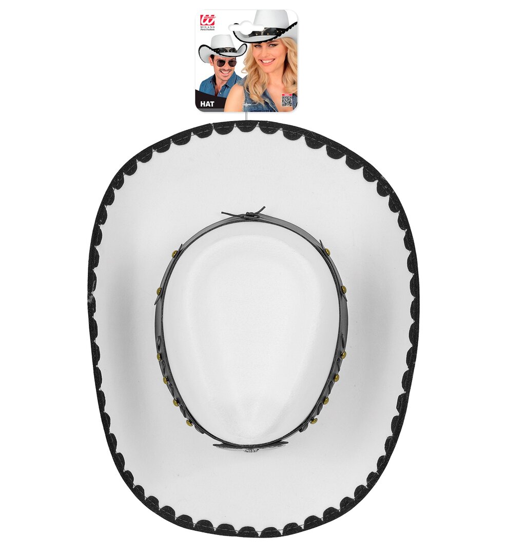 Biely kovbojský klobúk s čiernym lemovaním Biely kovbojský klobúk s čiernym lemovaním