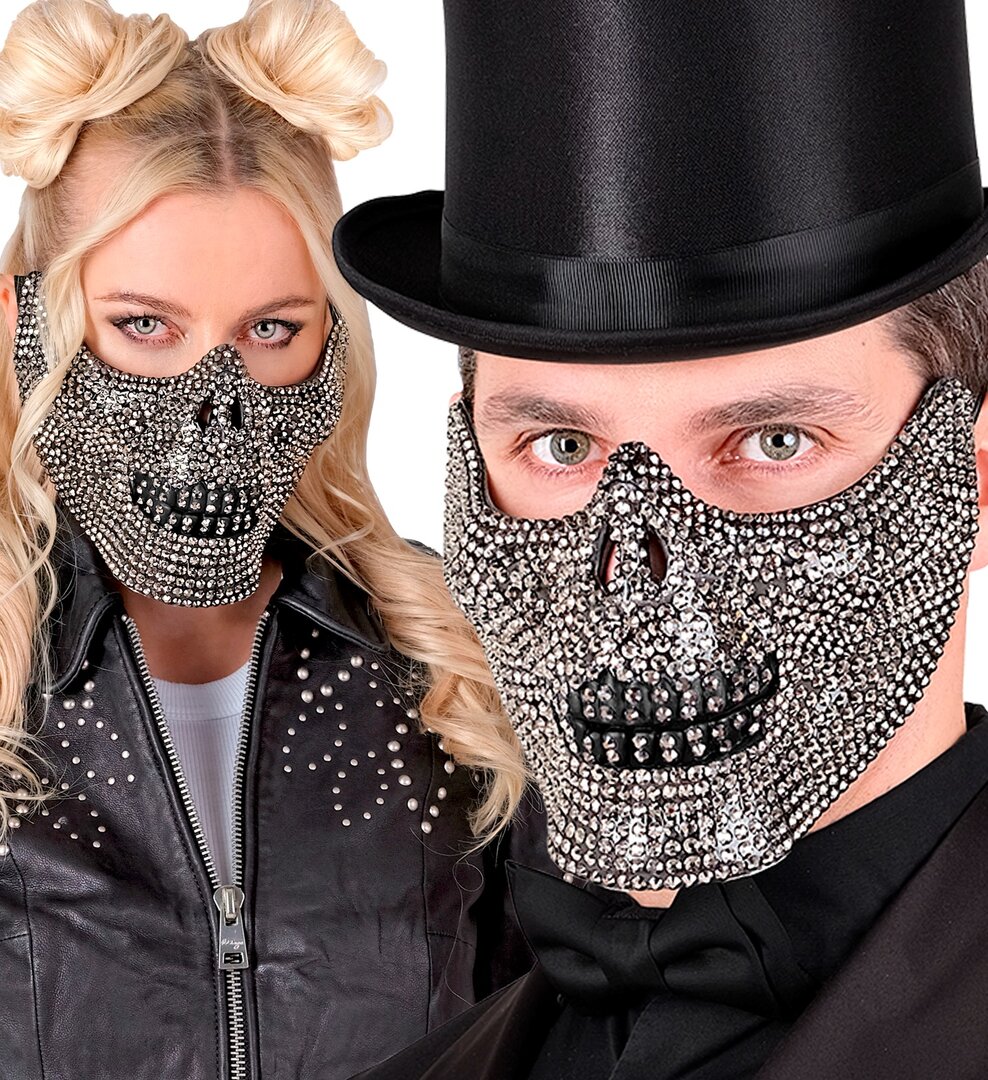 Maska na tvár s motívom lebky a kamienkami Maska na tvár s motívom lebky a kamienkami