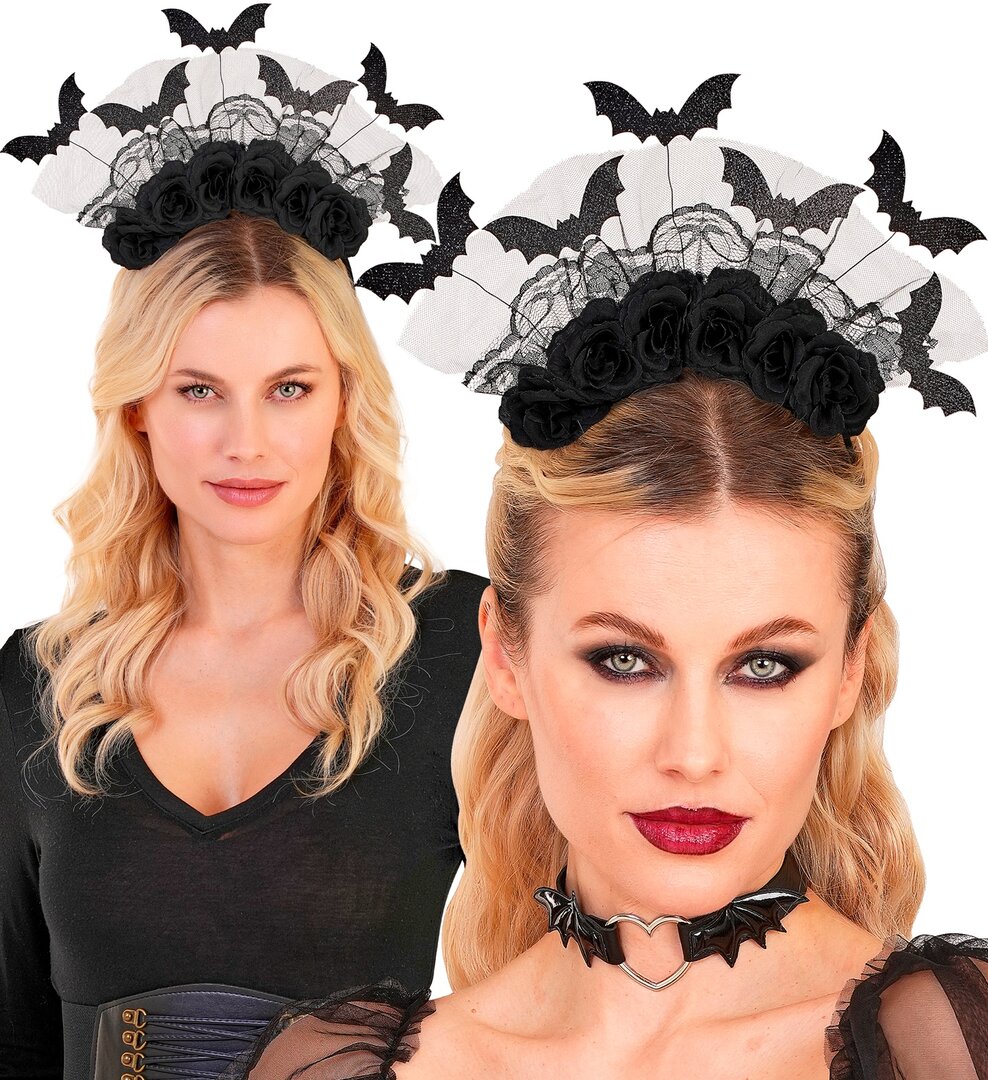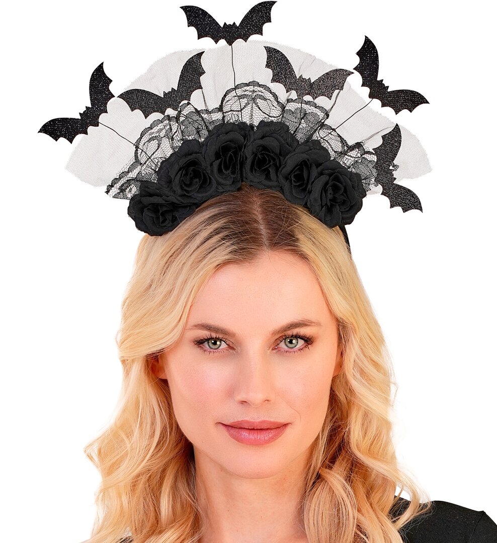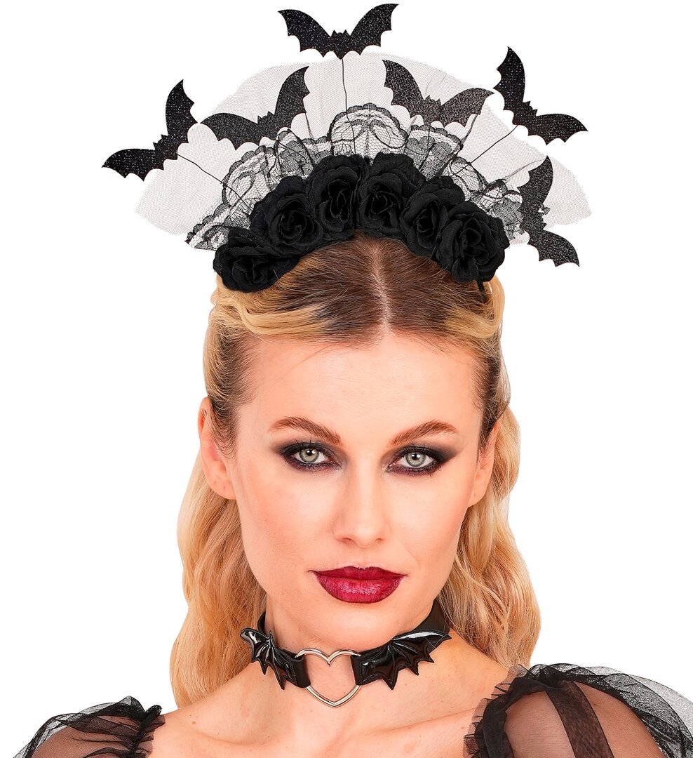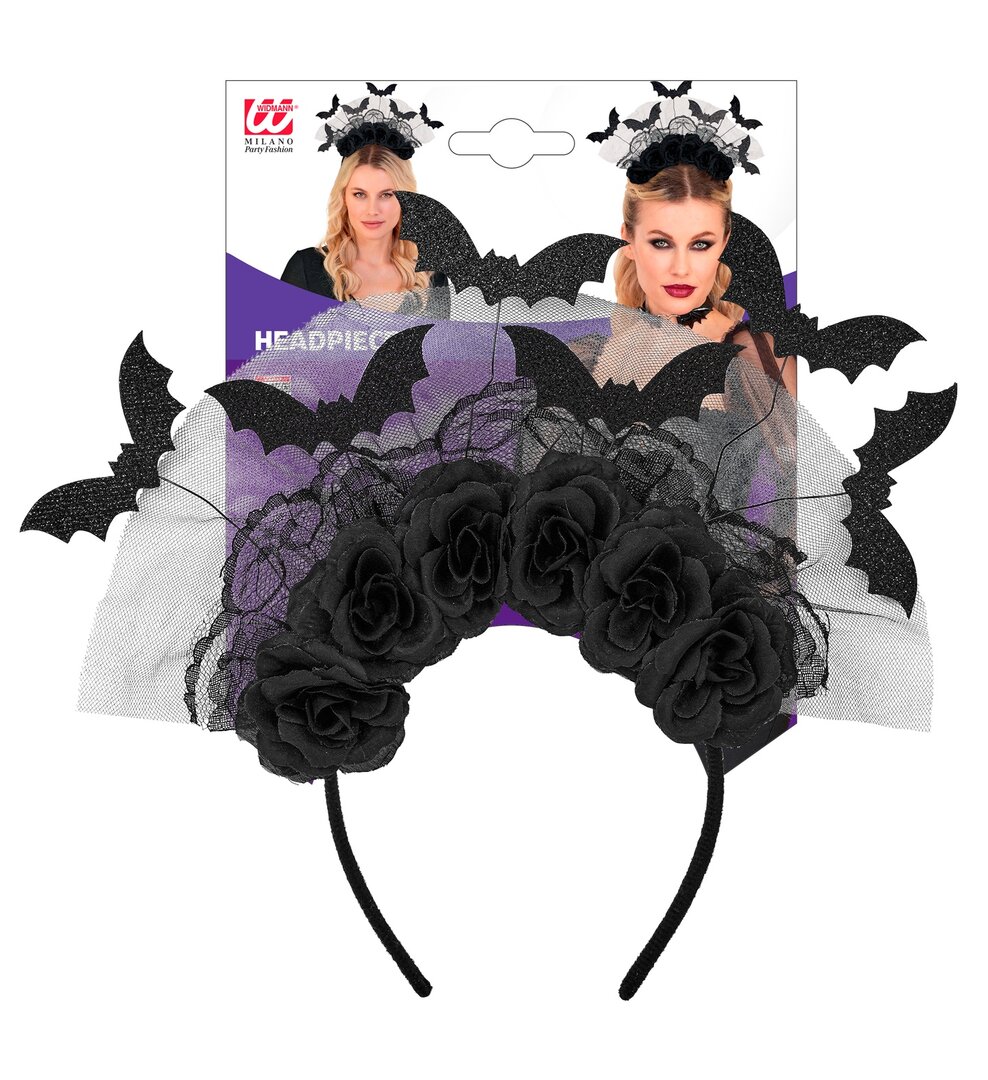 Halloweenska čelenka s netopiermi a ružami Halloweenska čelenka s netopiermi a ružami