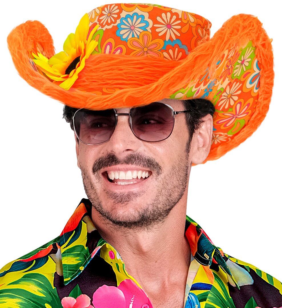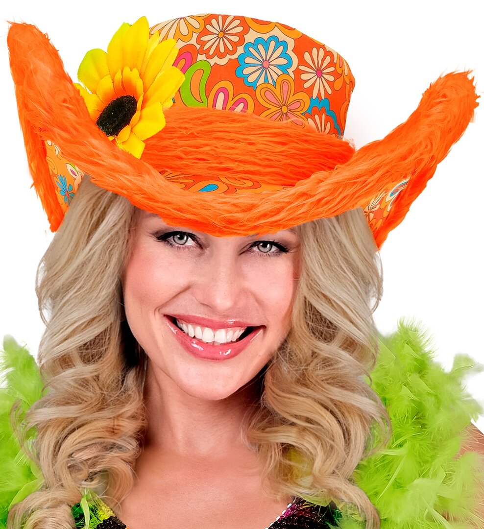 Oranžový klobúk Ibiza so slnečnicou Oranžový klobúk Ibiza so slnečnicou