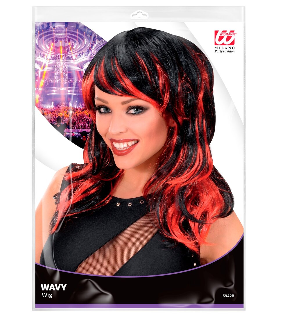 Dámska vlnitá parochňa s červenými pruhmi Dámska vlnitá parochňa s červenými pruhmi
