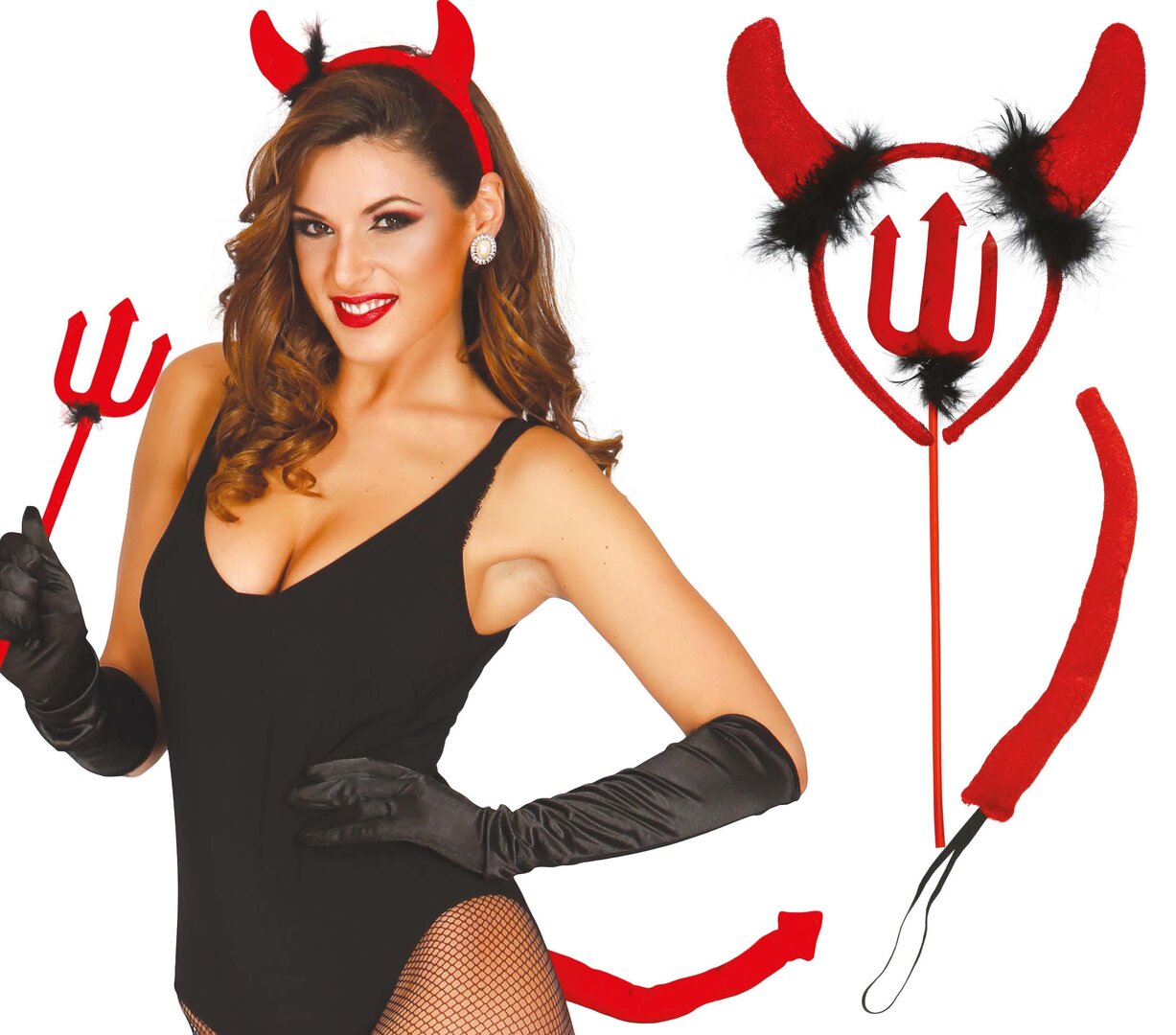 Dámsky čertovský set (čelenka, chvost, vidly) Dámsky čertovský set (čelenka, chvost, vidly)