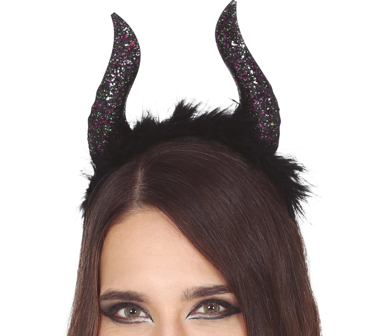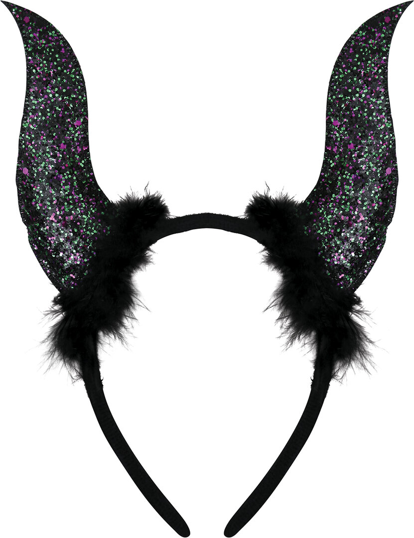 Čierne rohy s trblietkami na čelenke Čierne rohy s trblietkami na čelenke