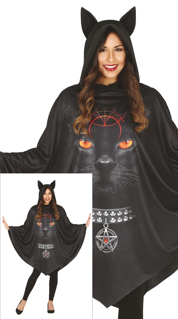 Dámske pončo Halloween čierna mačka