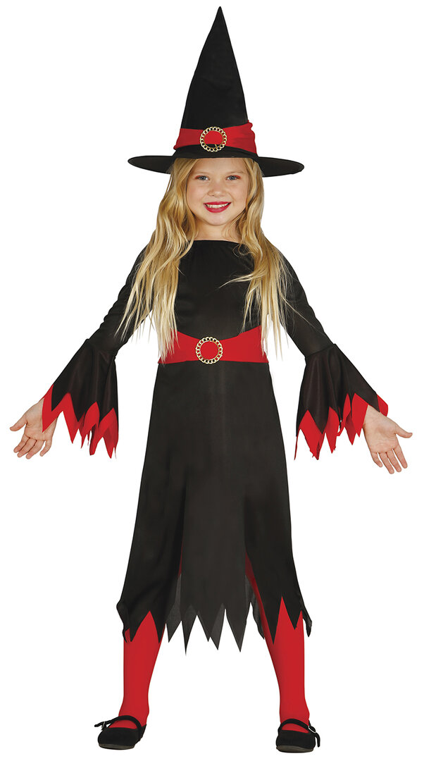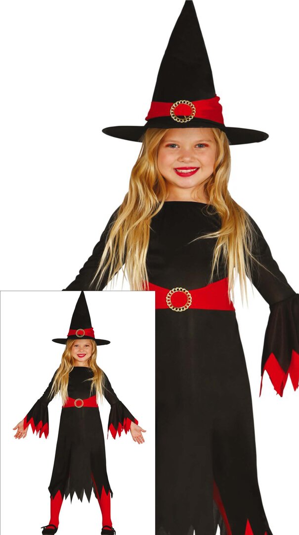 Dievčenský kostým čarodejnice s červenými detailmi
