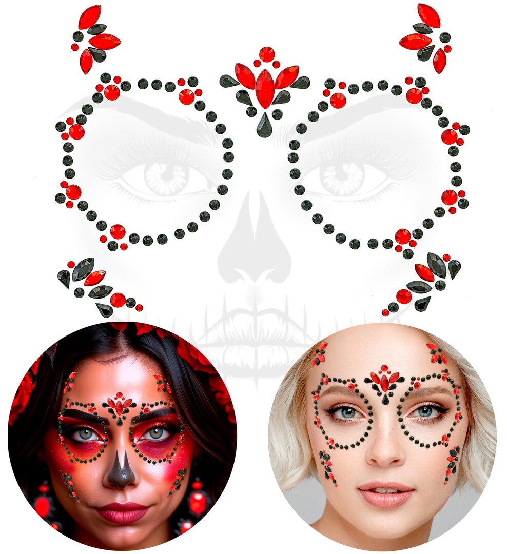 Dia de los muertos samolepiace kamienky, červené a čierne Dia de los muertos samolepiace kamienky, červené a čierne