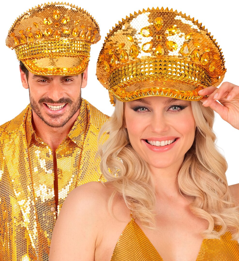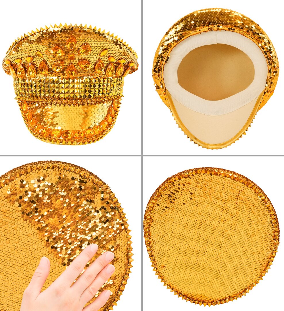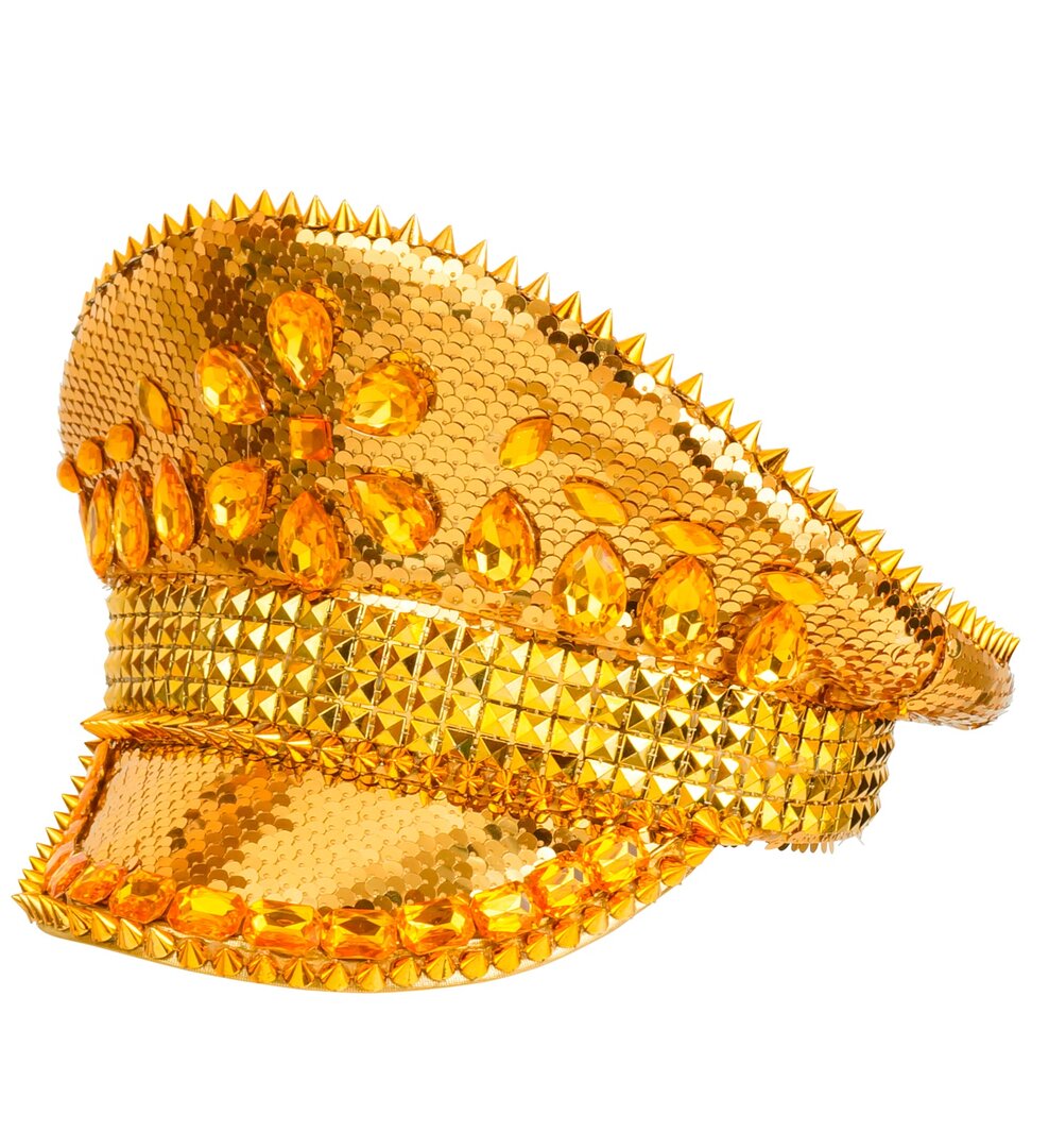 Zlatá kapitánska čiapka s flitrami