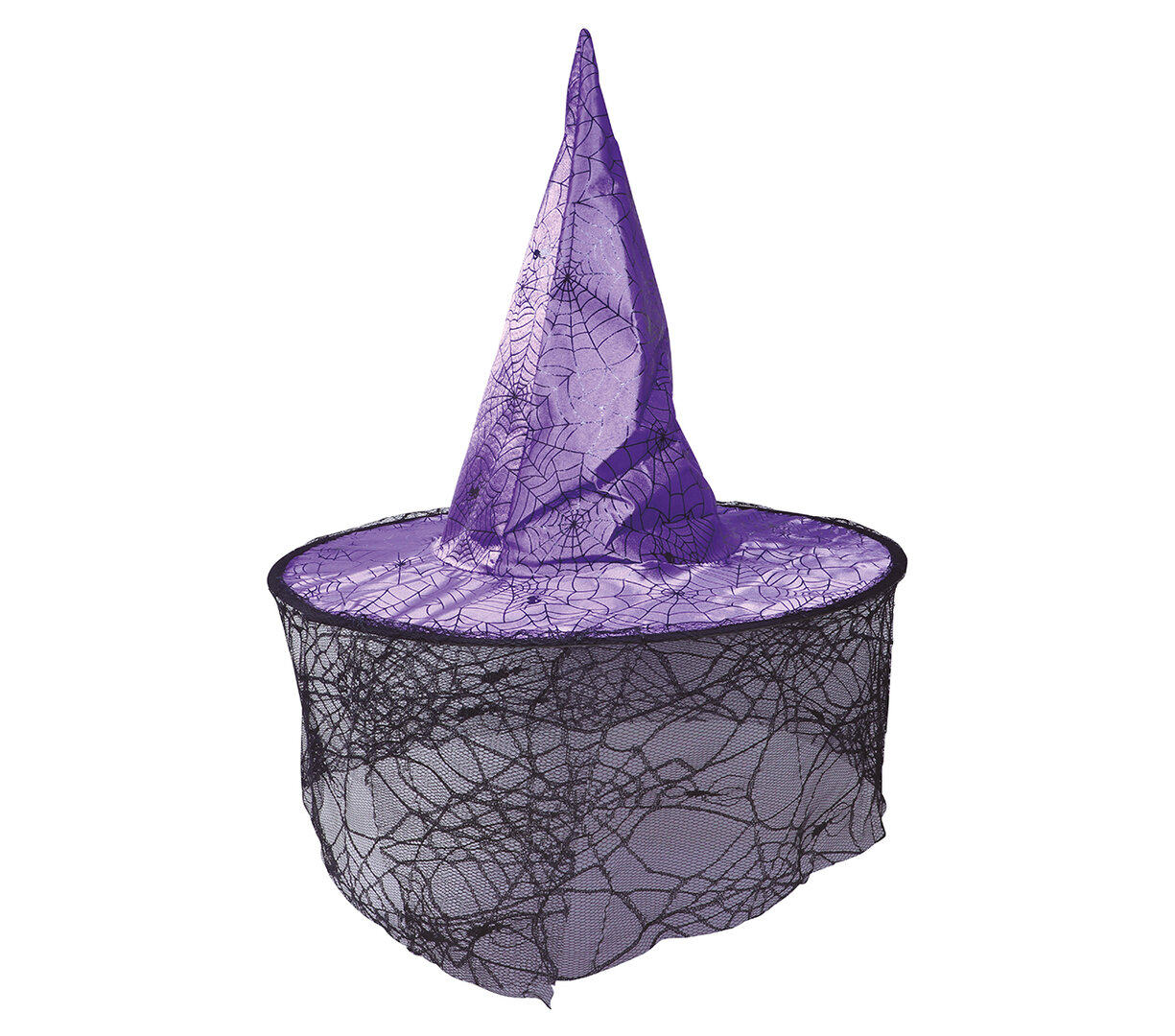 Čarodejnícky klobúk s pavučinou, fialový Čarodejnícky klobúk s pavučinou, fialový